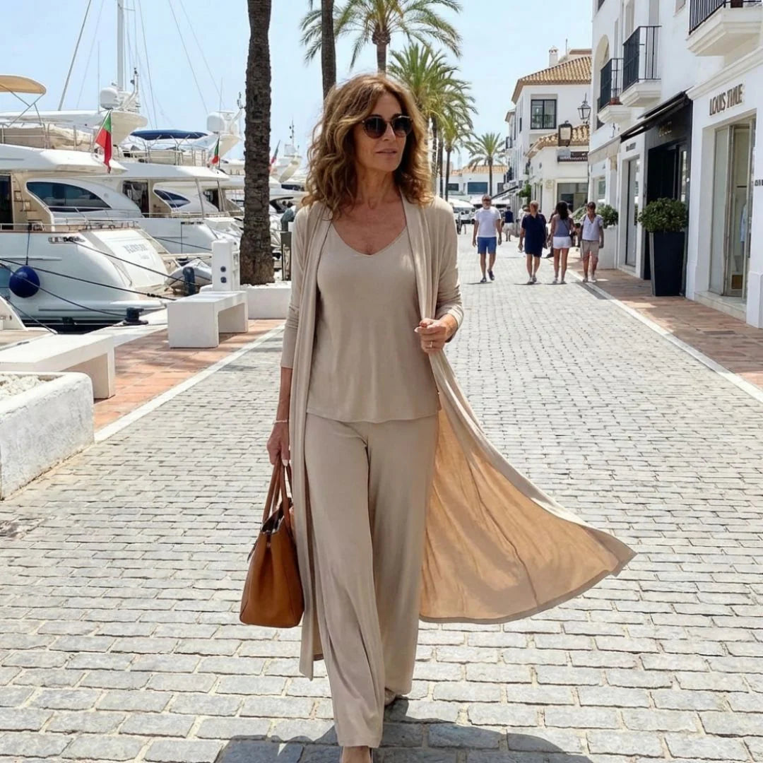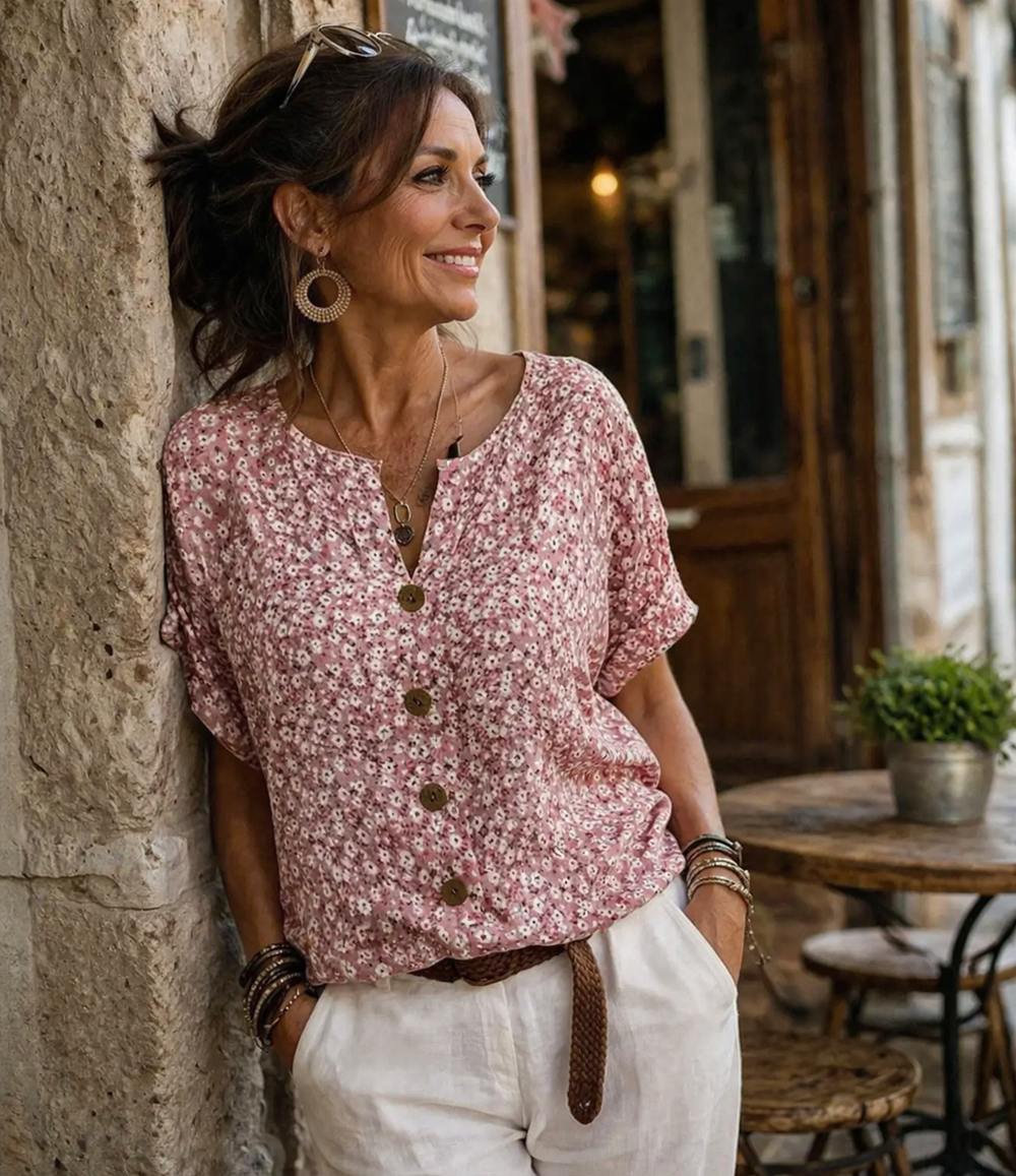 Confeccionado en poliéster ligero y transpirable, Adriana ofrece una caída suave y cómoda que mantiene su forma mientras se siente fresco durante todo el día.